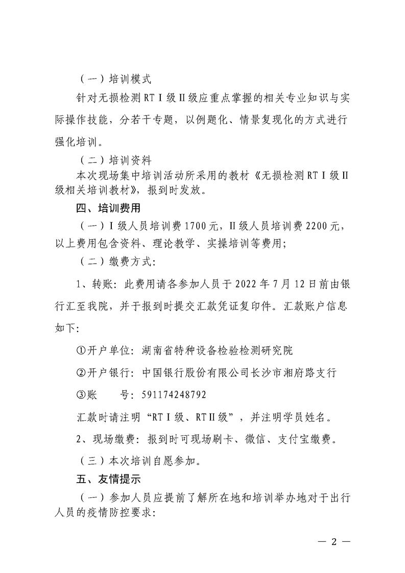 关于举办2022年特种设备无损检测RTⅠ级Ⅱ级人员资格取证培训活动的通知