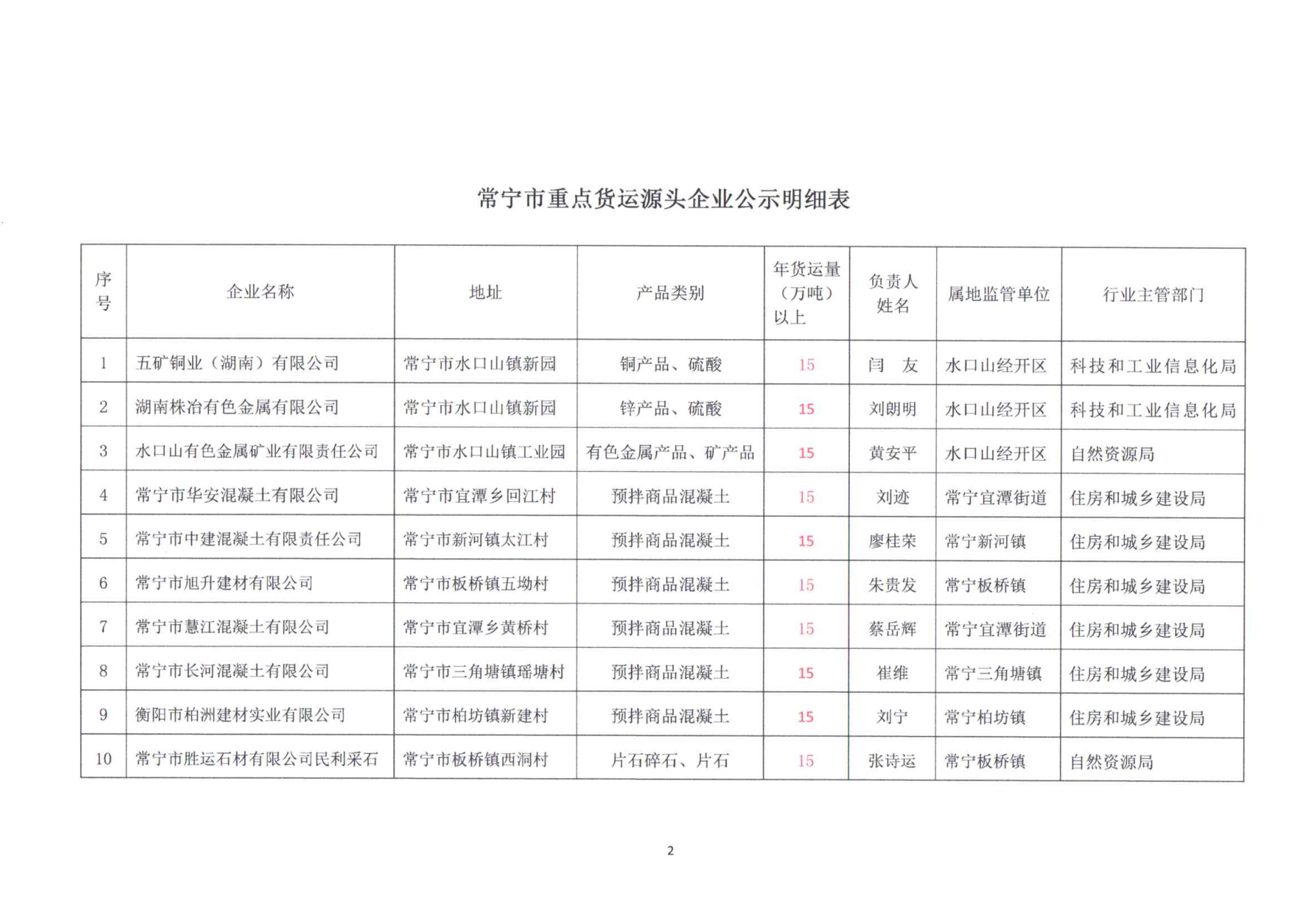关于公示常宁市重点货运源头企业的通告